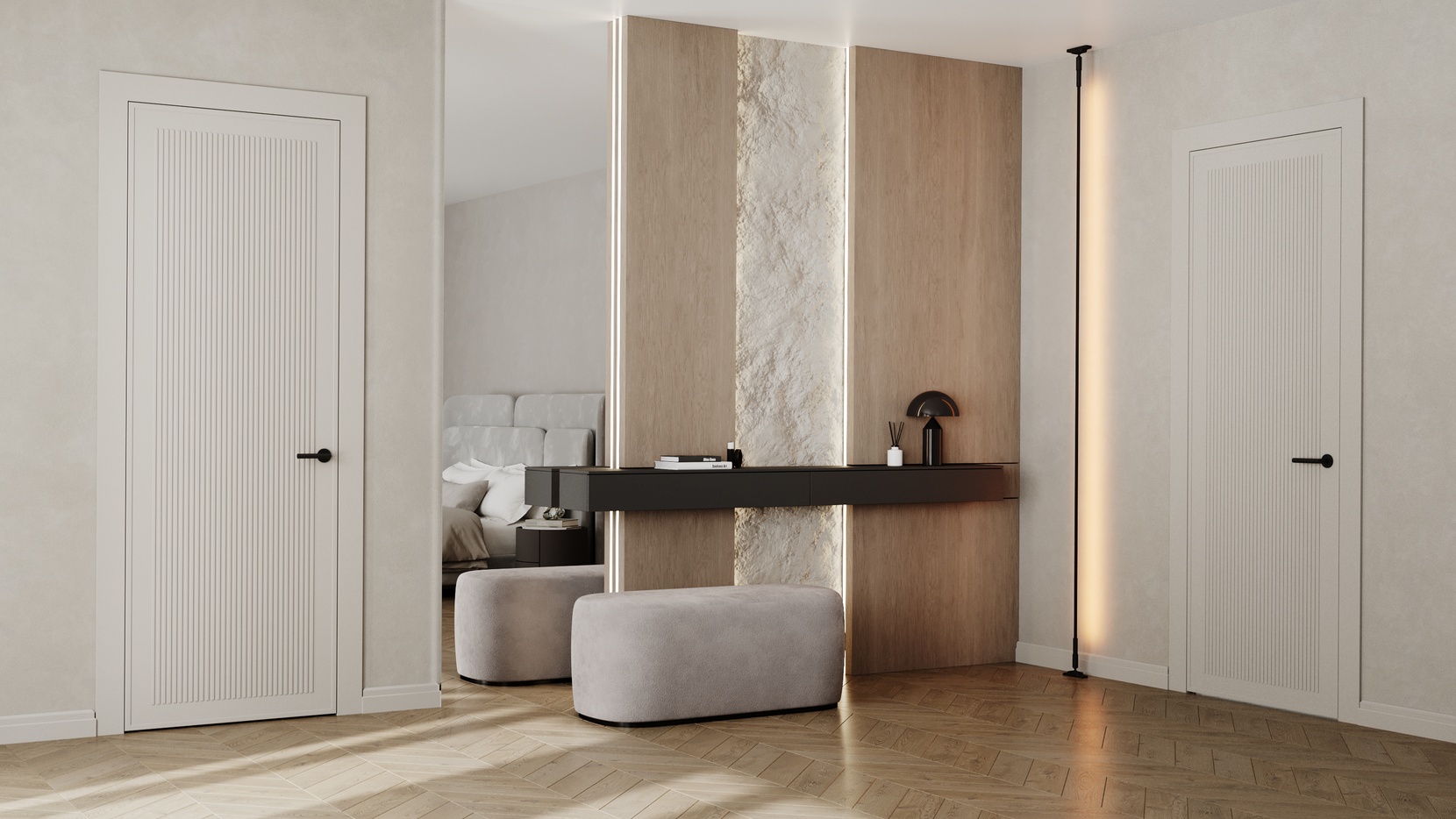 Коллекция Pulse разработана для современных интерьерных решений, где важны графичность, ритм и выразительность. Такой дизайн особенно органично вписывается в интерьеры в стиле современного минимализма, хай-тека и индустриальных лофтов, добавляя пространству динамики и структурной четкости. Двери становятся не просто функциональным элементом, а полноценным арт-объектом в интерьере.