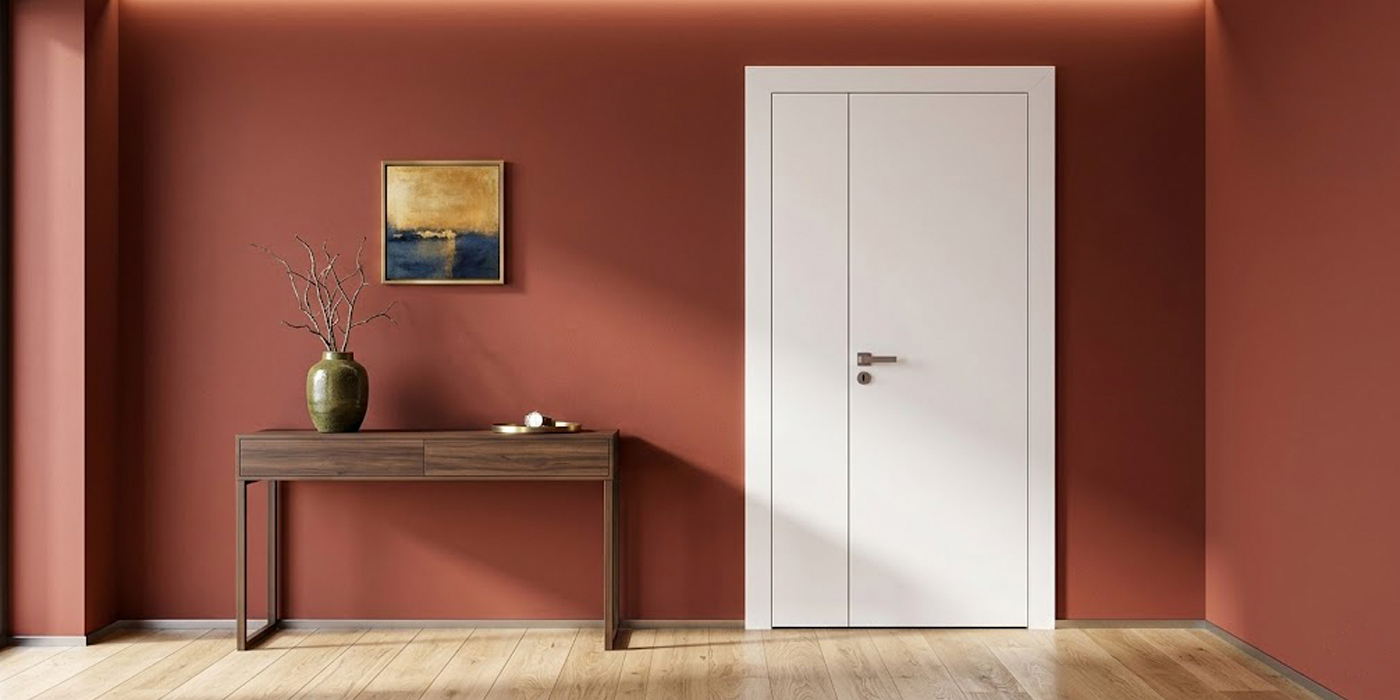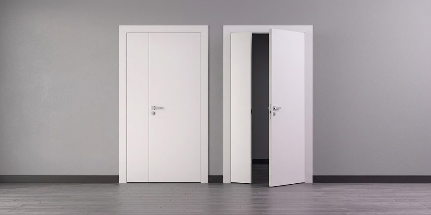 В одном помещении можно установить несколько компланарных дверей, которые будут выглядеть одинаково и находиться в одной плоскости, при этом одни могут открываться внутрь, а другие — наружу. Это позволяет сохранить единый внешний вид интерьера при разной функциональности помещений.