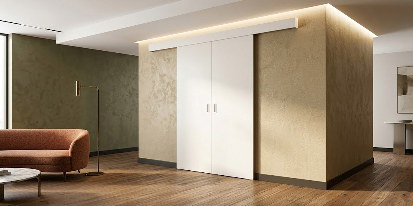 Раздвижные двухстворчатые двери вдоль стены | Фабрика дверей Provance